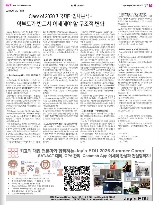 Class of 2030 입시는 다섯 가지 키워드로 정리할 수 있습니다.